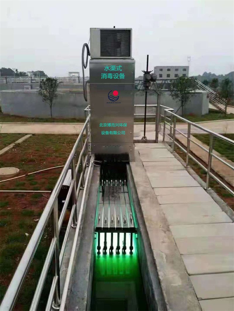 我公司生产的型号为SW紫外线杀菌器适用于城市污水、水区生活污水、工商业污水的消毒处理。该设备采用美国进口的低压高能的紫外线灯管和相匹配的镇流器,灯管的有效使用寿命可达到12000小时。设备为模块式,可置放于明渠中对污水进行杀菌处理。每个紫外线水槽中可以设置多个紫外线组,每组又由多个紫外线模块。